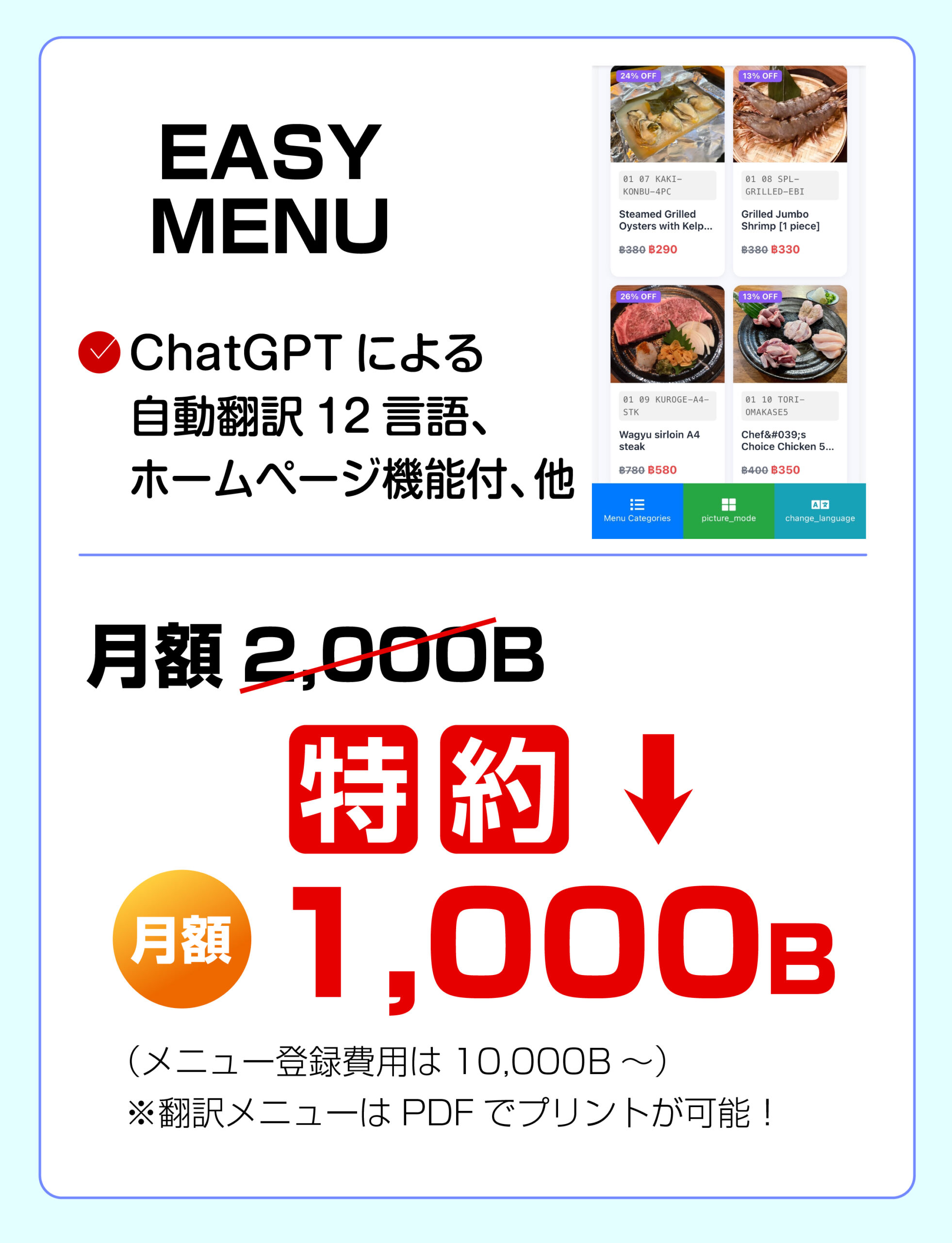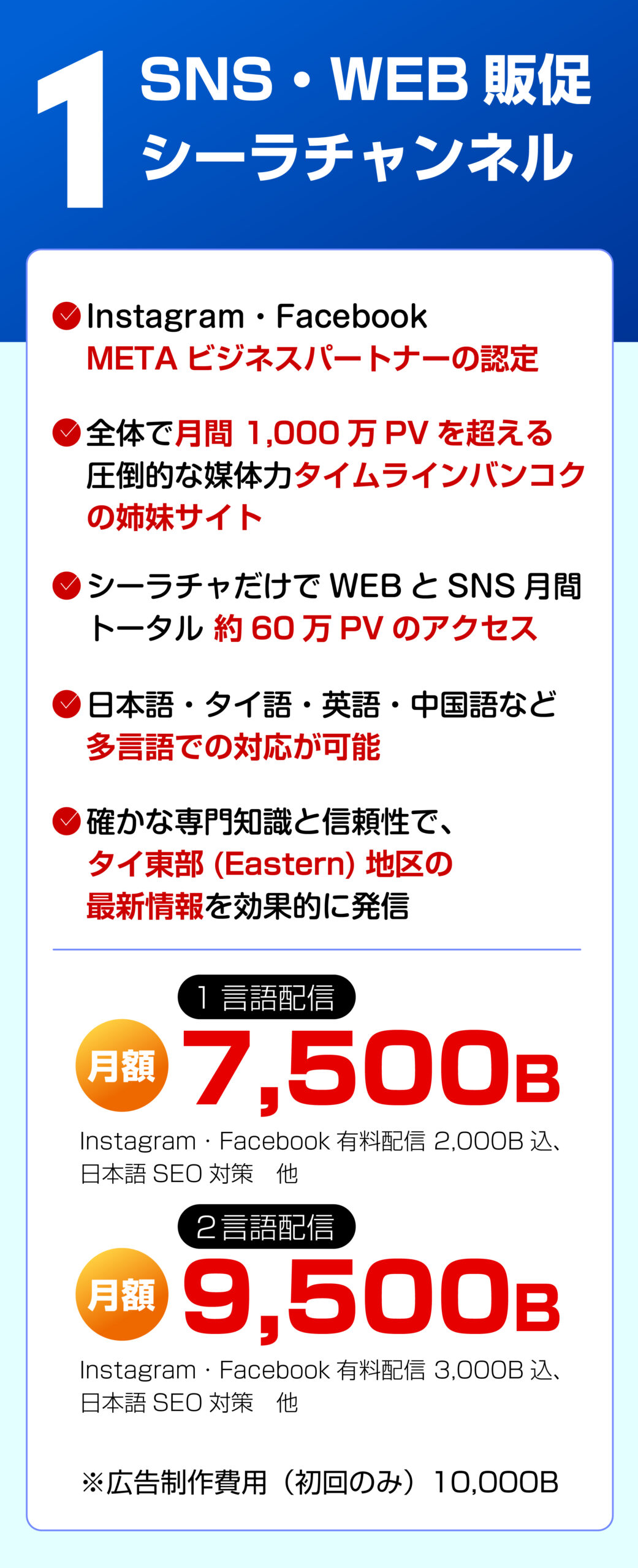✅ 月額 7,500バーツ(課金広告費込み)